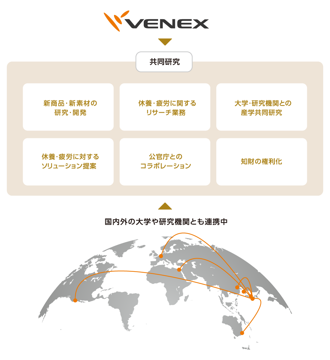 運動・栄養・休養が健康の大切な3要素だと言われながら、これまで世の中に「休養学」は存在しませんでした。ベネクスは、休養学を確立した片野秀樹が最高製品責任者を務め、休養学に基づいた研究開発を行っています。
