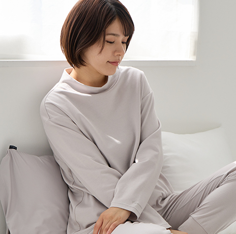 やわらかな伸縮性とシワになりにくい素材で寝返りも打ちやすく、就寝時にオススメです。