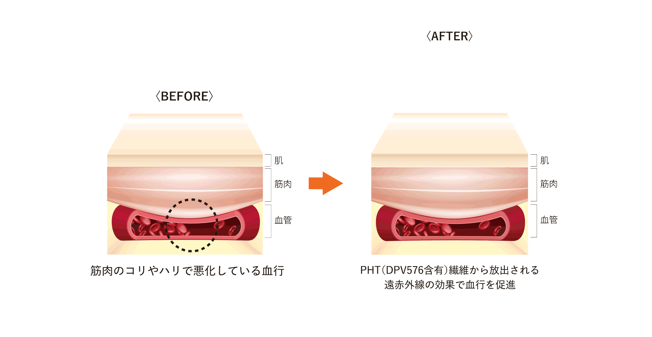一般医療機器 「家庭用遠赤外線血行促進用衣」は、血行促進作用により、疲労の回復、血行促進、筋肉等のコリの改善などが期待できます。