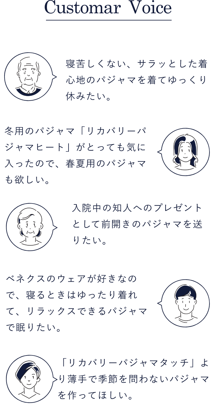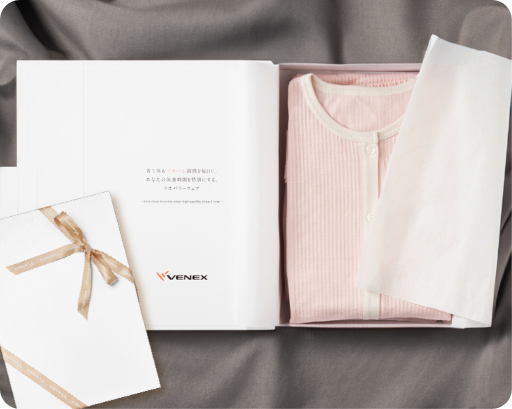 パジャマ用に特別開発したコットン混でやわらかな着ごこち。ロングシーズン着用可能で毎日の睡眠に寄り添った、”ベネクスならでは”のリカバリーパジャマをつくりたい。そのために開発されたニットサッカー素材がついに完成。表情ある素材感であなたの大切な睡眠時間にやさしく、穏やかに寄り添います。
