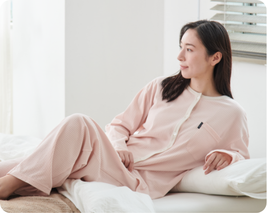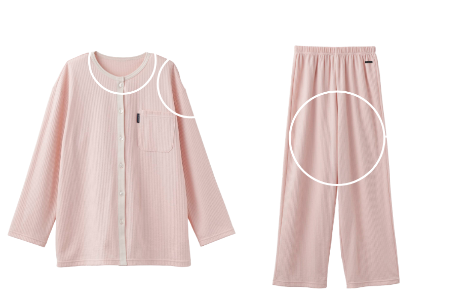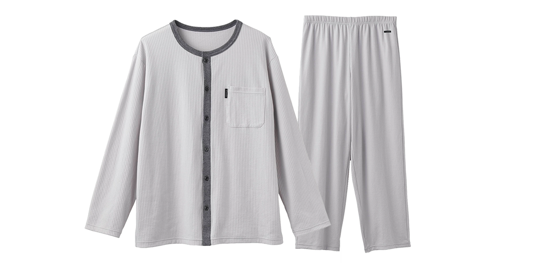 パジャマならではのゆったりしたシルエットは、通気性を高め、衣服内の温度・湿度を調整しやすい構造です。